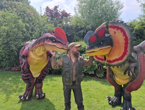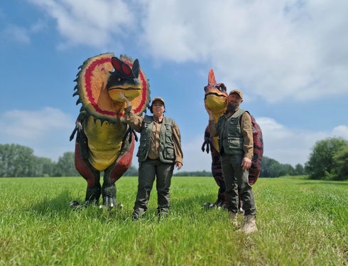 Zelfs de Dilophosaurussen zien de baby niet als een hapje, maar gaan er zich ook over ontfermen.
